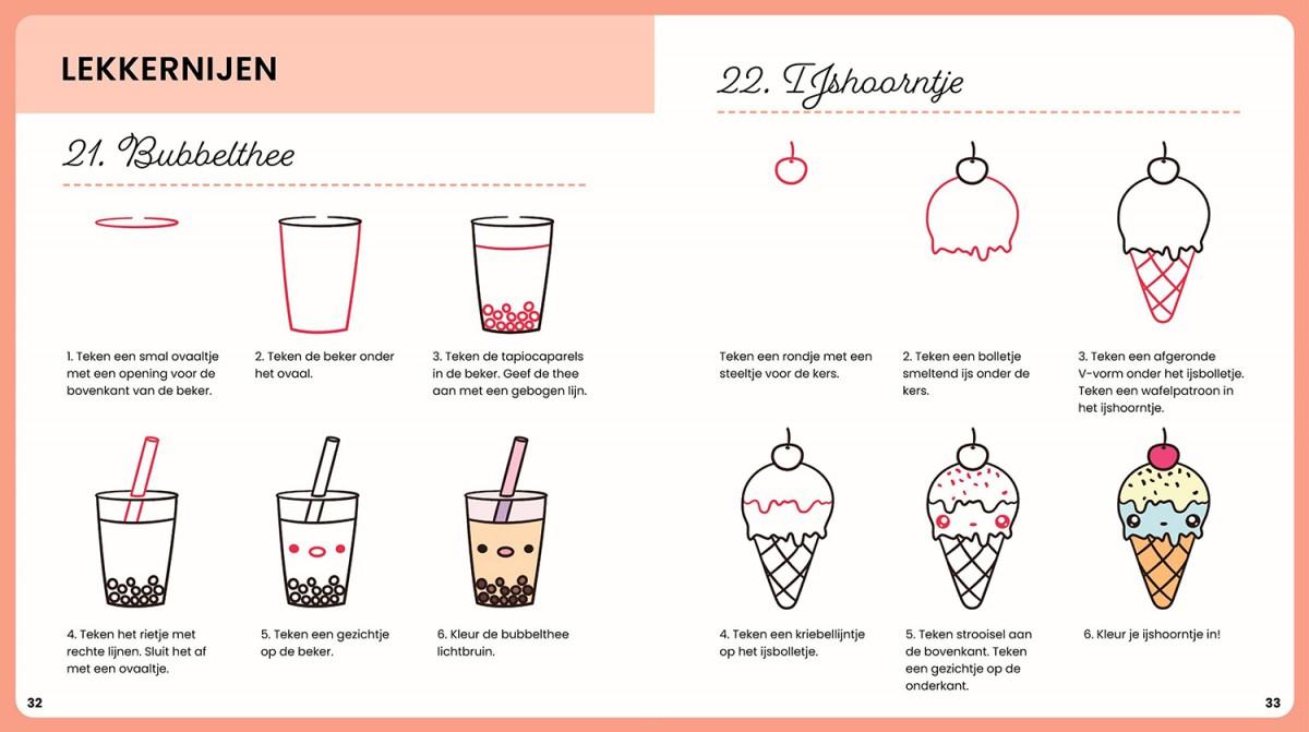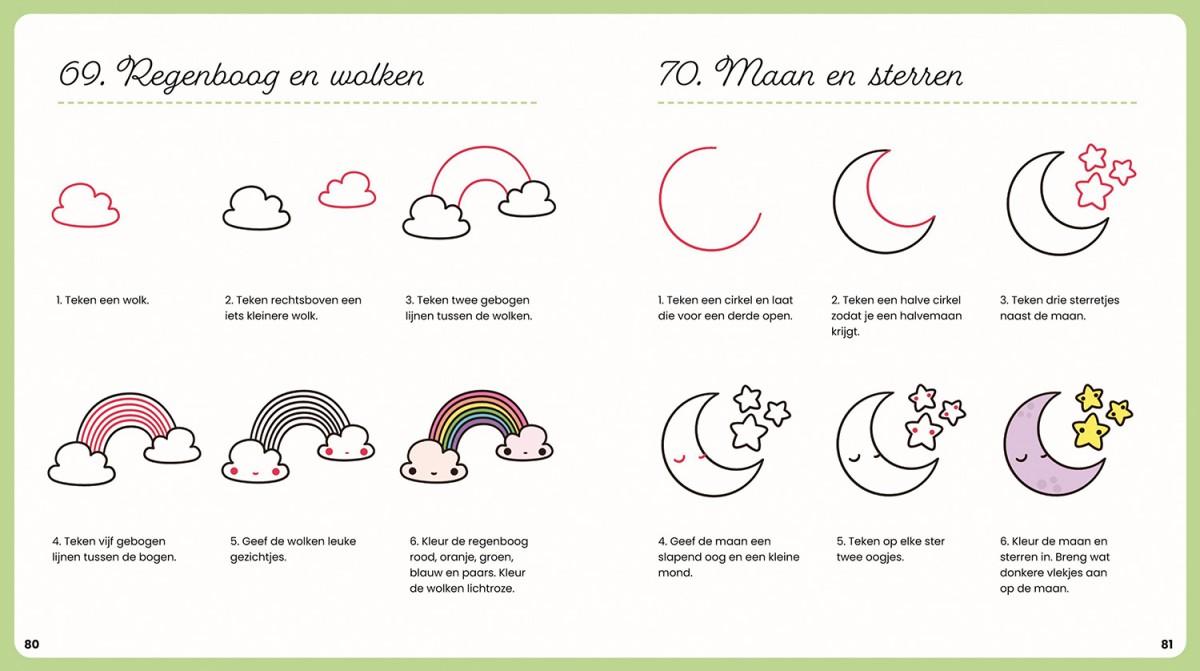 Je zult volop genieten van de vele voorbeelden van vertederende dieren, schattige snacks, grappige spulletjes en fantastische fabeldieren. Met 101 superschattige kawaii-tekeningen maak je moeiteloos mooie en superschattige tekeningen. Dit wordt je favoriete tekenboek!