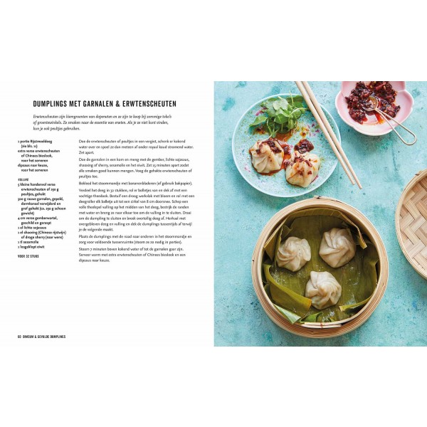 Boordevol recepten voor hapjes in streetfoodstijl zoals Bao en dumplings, maar ook volledige gerechten met vlees, vis, groenten, tofoe en rijst - en zelfs desserts.