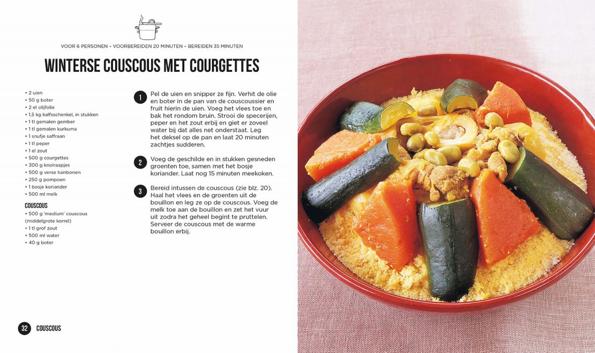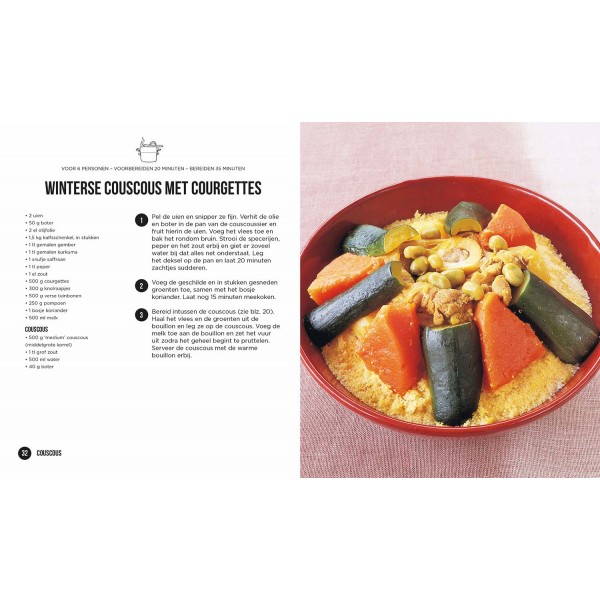 Vegetarische couscous, winterse couscous met courgettes, tajine van kabeljauw en saffraan, tajine van kip met mandarijnen en nog veel meer!