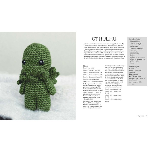 Wie zegt dat griezelig niet schattig kan zijn? Met deze indrukwekkende collectie amigurumi ontdek je een compleet nieuwe wereld vol bijzondere wezens en cryptiden in hun volle angstaanjagende glorie. Van klassieke cryptiden als Cthulhu, Nessie en de Motman tot ijzingwekkende wezens als zombies, weerwolven en Nosferatu zelf – de verschrikkingen die je zelf kunt haken zijn eindeloos.