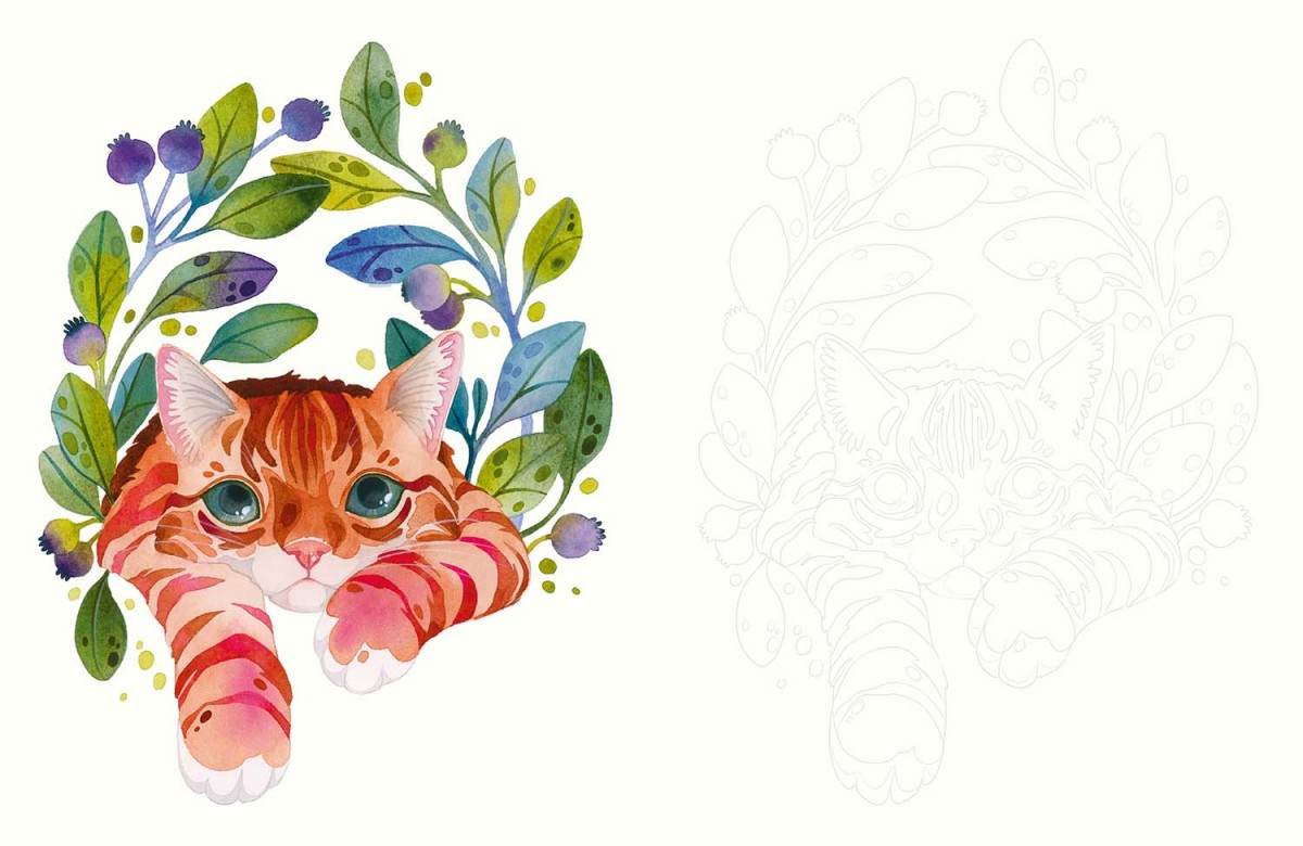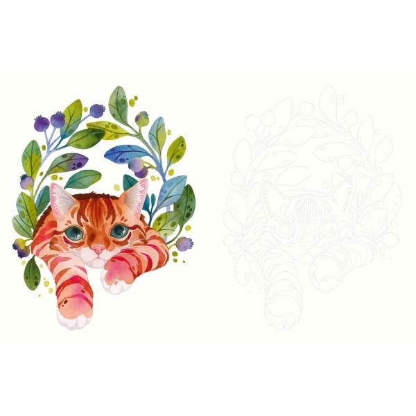 In dit boekje vind je kleur- en schilderplaten van katten, die met hun zachte lijnen en rijke vacht wachten om door jouw creativiteit tot leven gewekt te worden. Laat je op elke bladzijde inspireren door de ingekleurde versie aan de linkerkant en geef je eigen creatieve invulling aan de kleurplaat rechts – op hoogwaardig aquarelpapier dat ook perfect werkt met gouache, viltstiften of kleurpotloden. Durf te experimenteren met kleuren en nuances, en geef je verbeelding alle vrijheid!