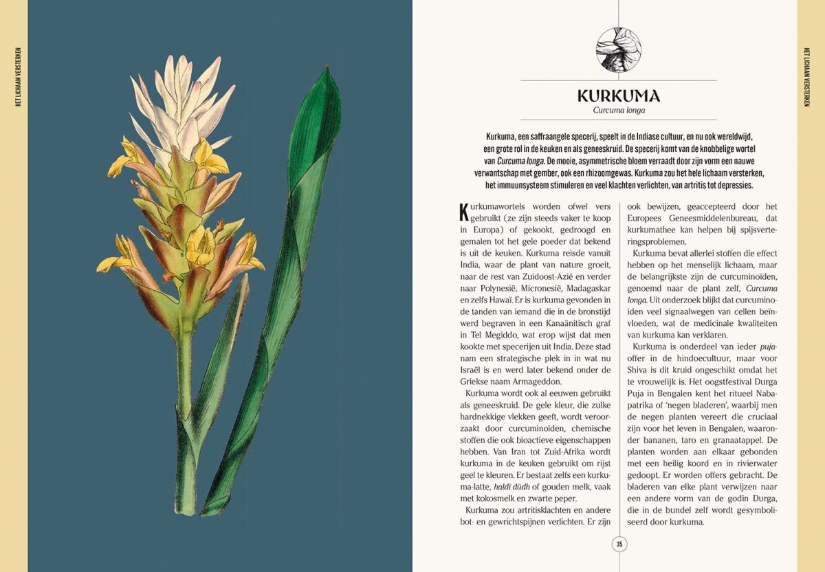 Medicinale planten uit de apothekerstuin, een overzicht van de geschiedenis van geneeskrachtige planten, verkent de kennis en mythologie van meer dan zestig soorten – van rustgevende hop, kamille en valeriaan tot weerstandversterkende kurkuma, moerasspirea en elfenbankje.