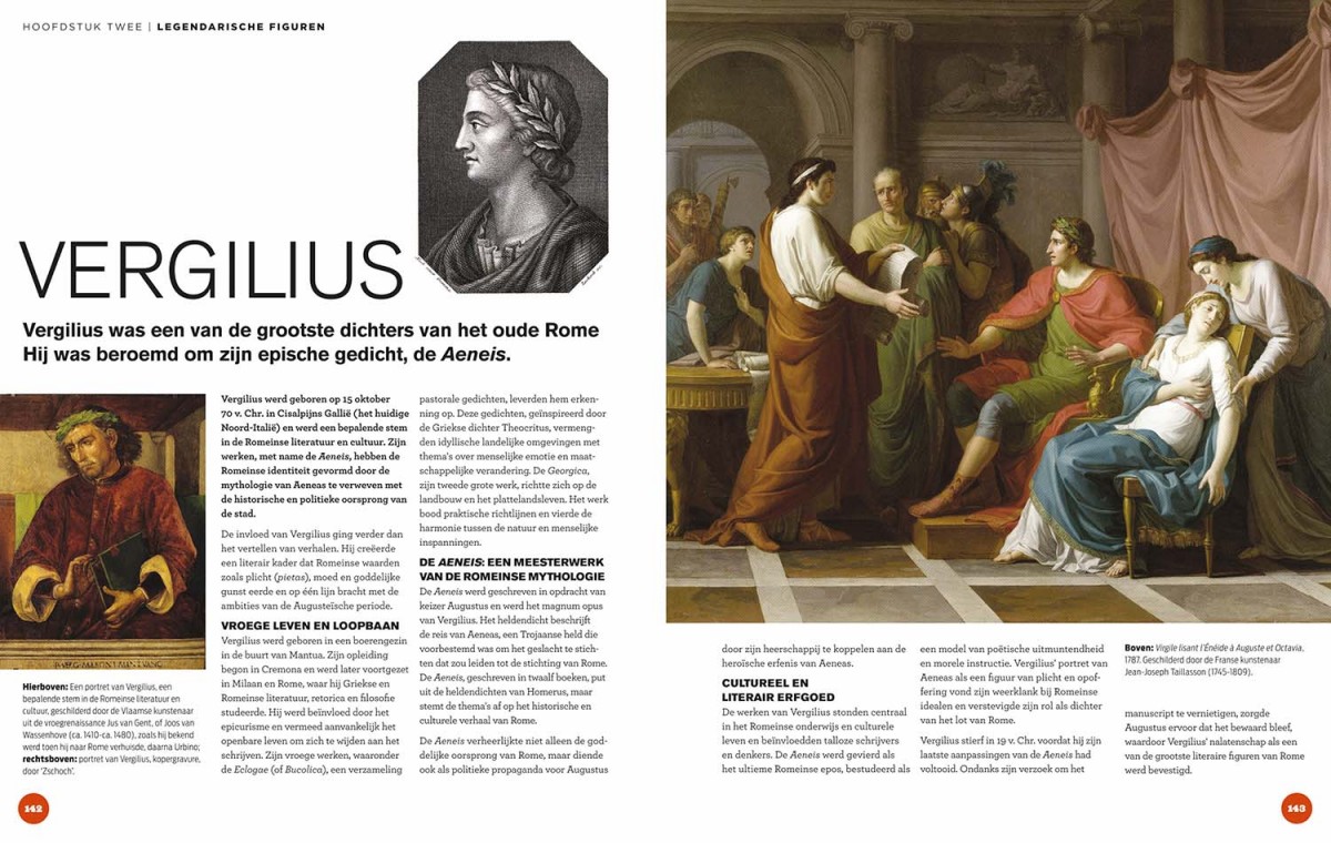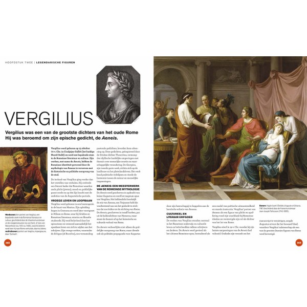 Ontdek de legendarische verhalen die de identiteit van Rome vormgaven: de epische reis van Aeneas, de rivaliteit tussen Romulus en Remus, en de stichting van de stadstaat die uiteindelijk zou uitgroeien tot het Romeinse Rijk. Maak kennis met de mythische wezens en geesten die de Romeinse mythologie en religie bevolkten, van de beschermende Lares tot de angstaanjagende Furiën, en duik in verhalen over Romeinse helden en heersers — figuren als Numa Pompilius, wier wijsheid goddelijke orde bracht in de stad, en keizer Augustus, de eerste leider van Rome.