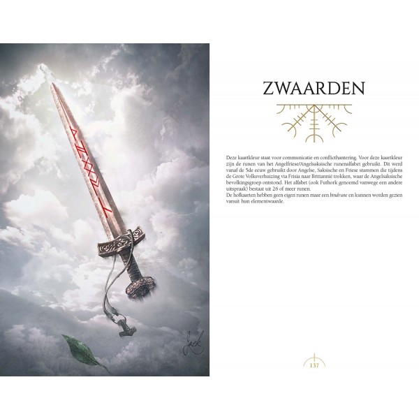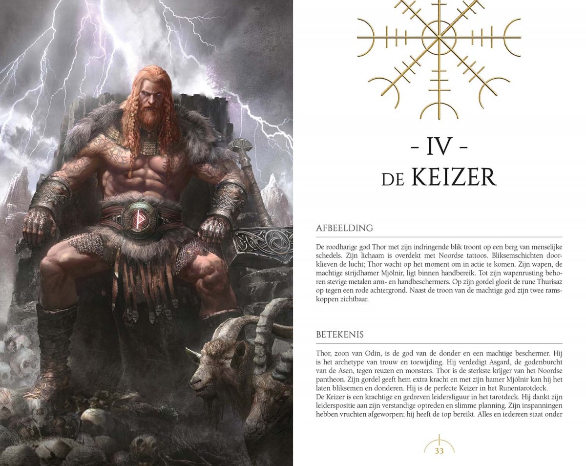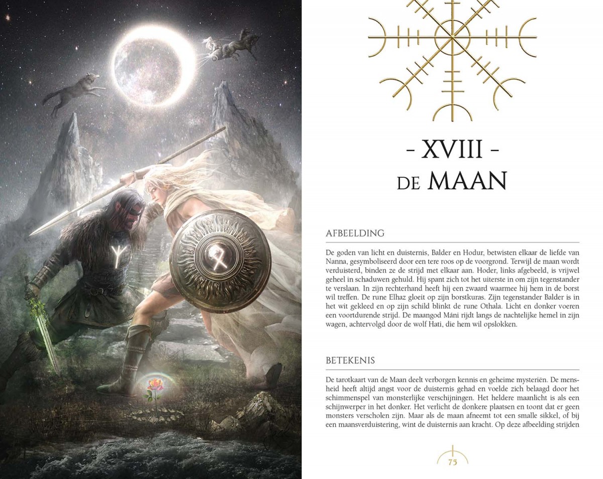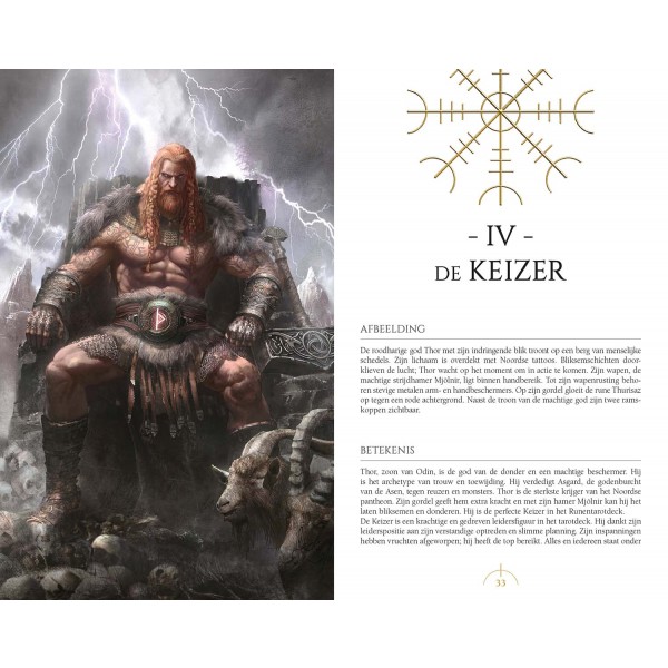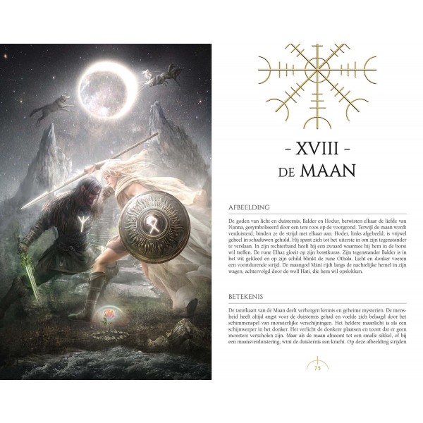 Het Runentarot combineert twee waarzegtradities tot één uniek en uitgebreid systeem. Beide tradities zijn fantastische hulpmiddelen om inzicht te krijgen in je leven. In het Runentarot kun je zien hoe runen communiceren met tarot, en vice versa, om iets unieks te creëren: een pad van oeroude magie, krachtige waarzegging en pure spiritualiteit. Elke kaart is verbonden met zowel een oude Noordse god (of godin) als met een rune, waarvan het symbool in het kunstwerk is verweven.
